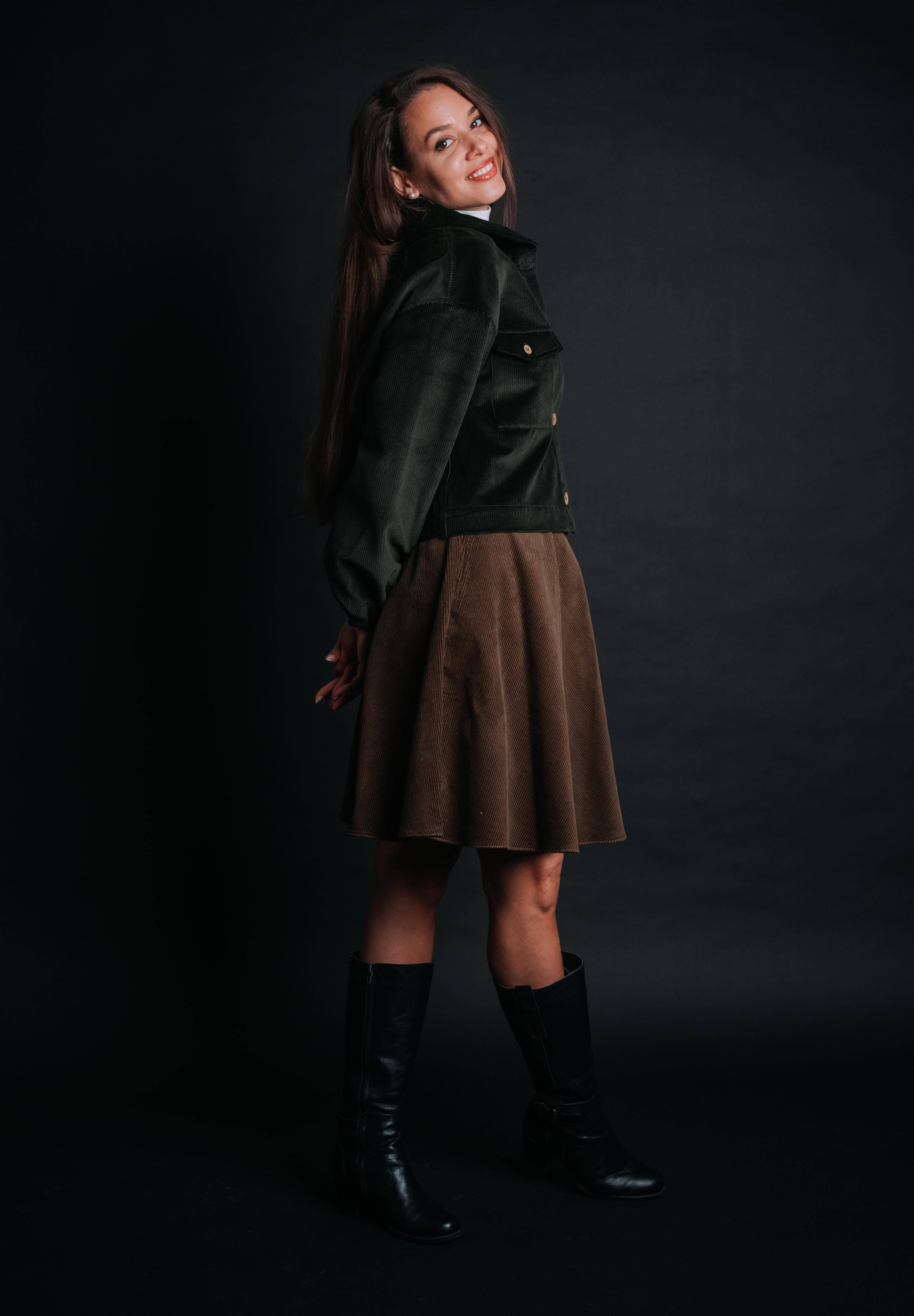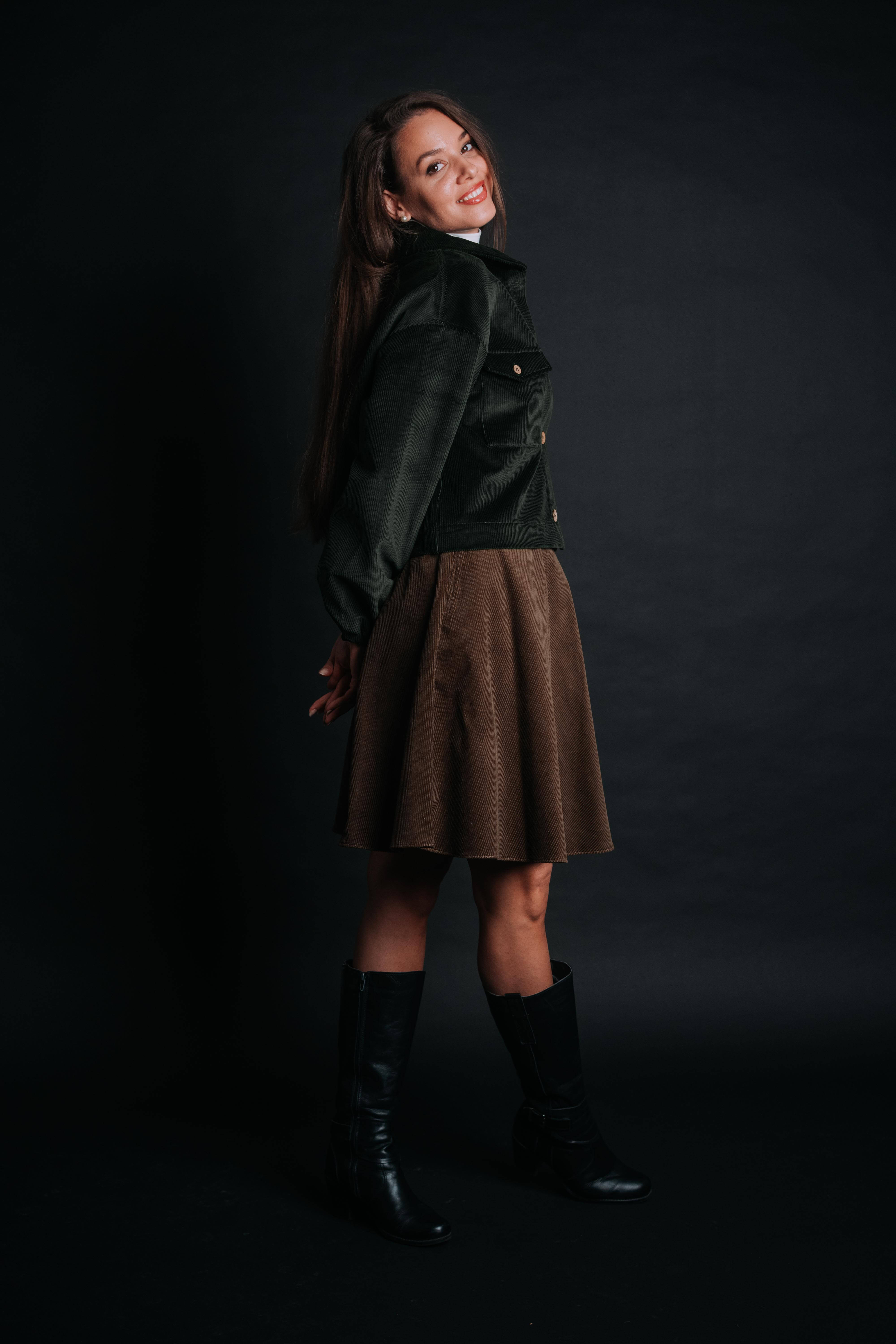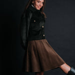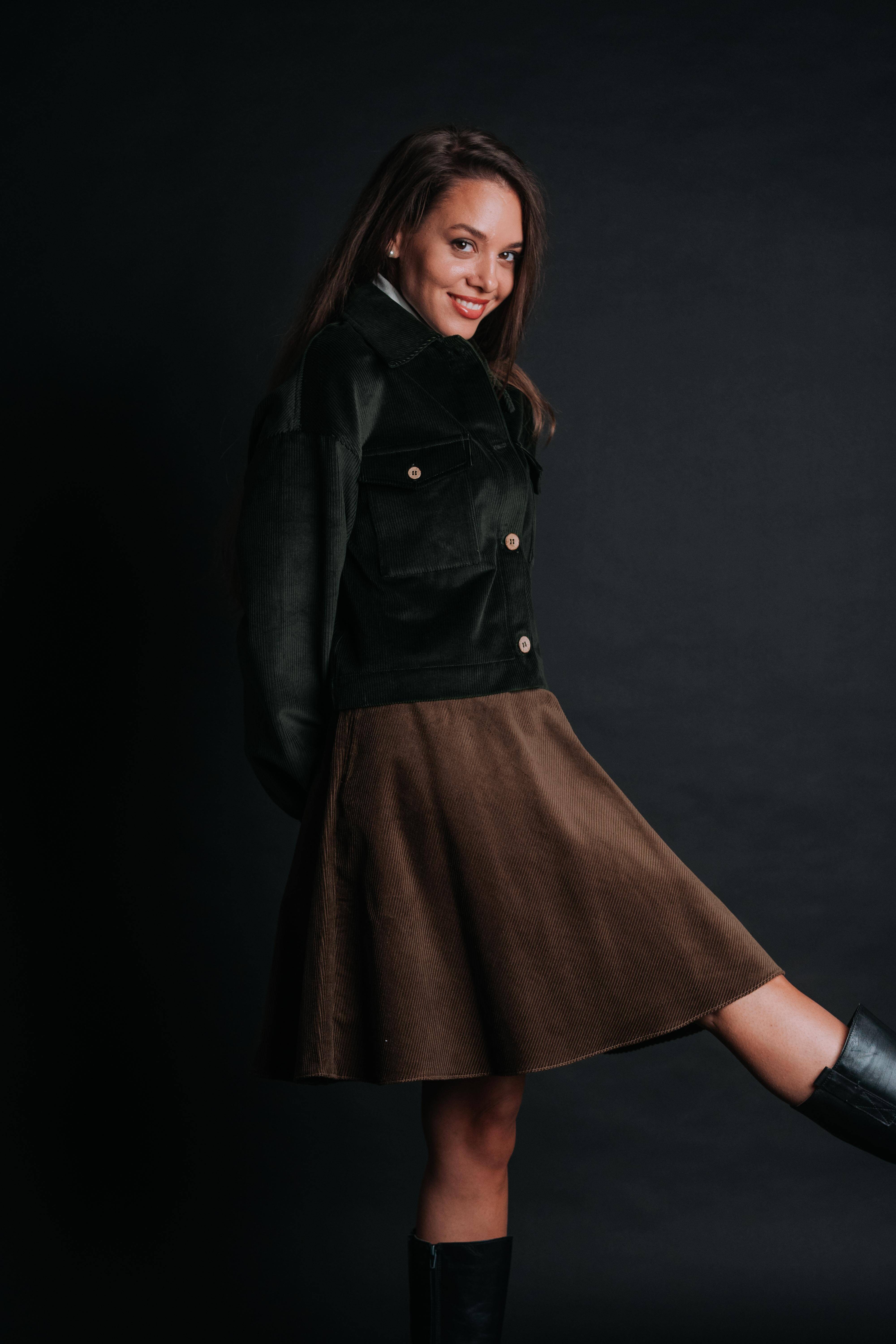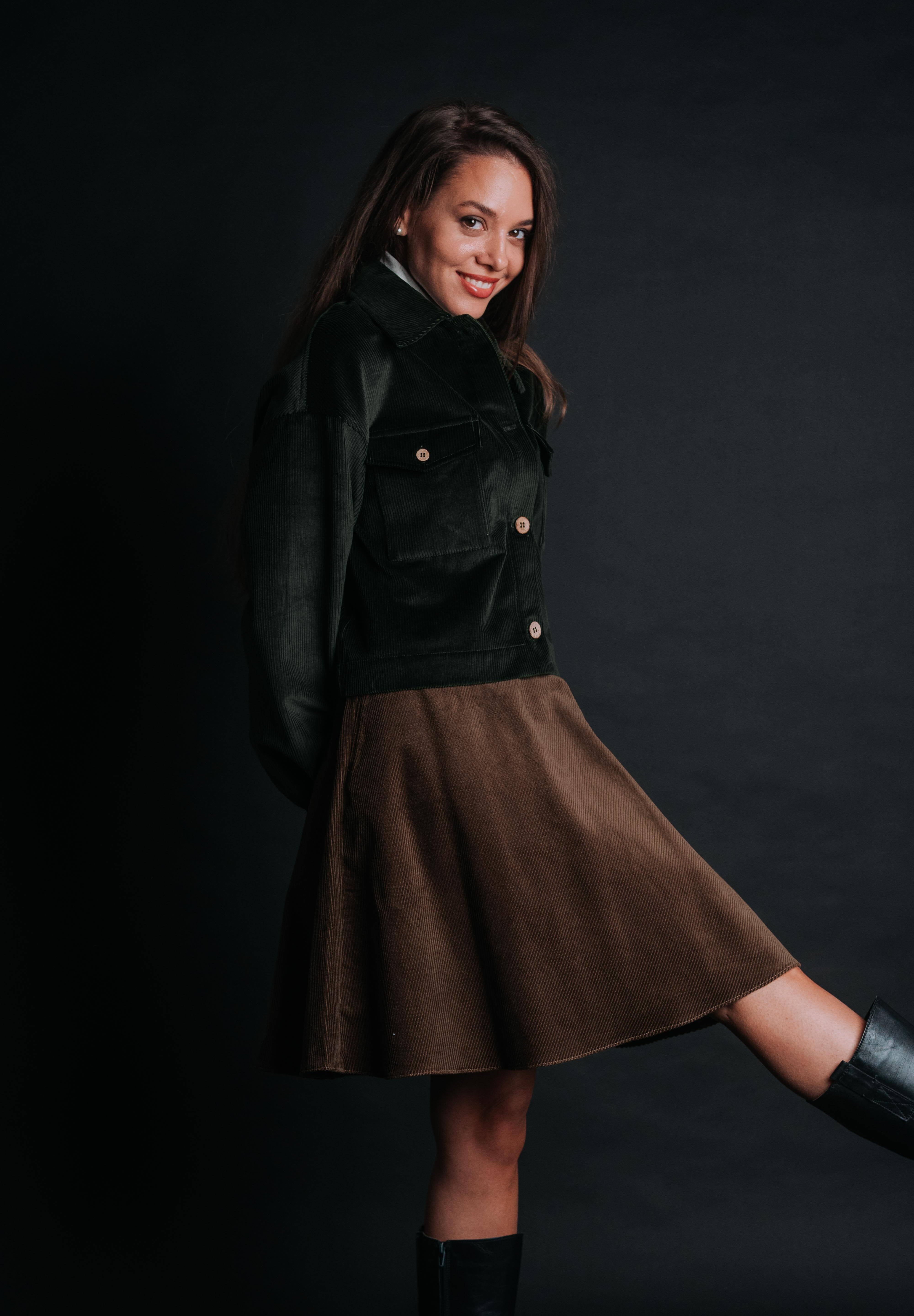 The "Borsa" Skirt makes you wonder why you would. A timeless above-the-knee piece, it’s crafted in soft corduroy that feels as warm as it looks—perfect for autumn and winter styling. Designed with a flattering high waist, it elongates the silhouette while offering comfort and ease of movement. Unlike a fitted mini, the Borsa has a relaxed, slightly A-line shape that skims the body without clinging, making it effortlessly versatile. Pair it with cozy knits, tailored jackets, or boots for a look that feels both casual and refined.