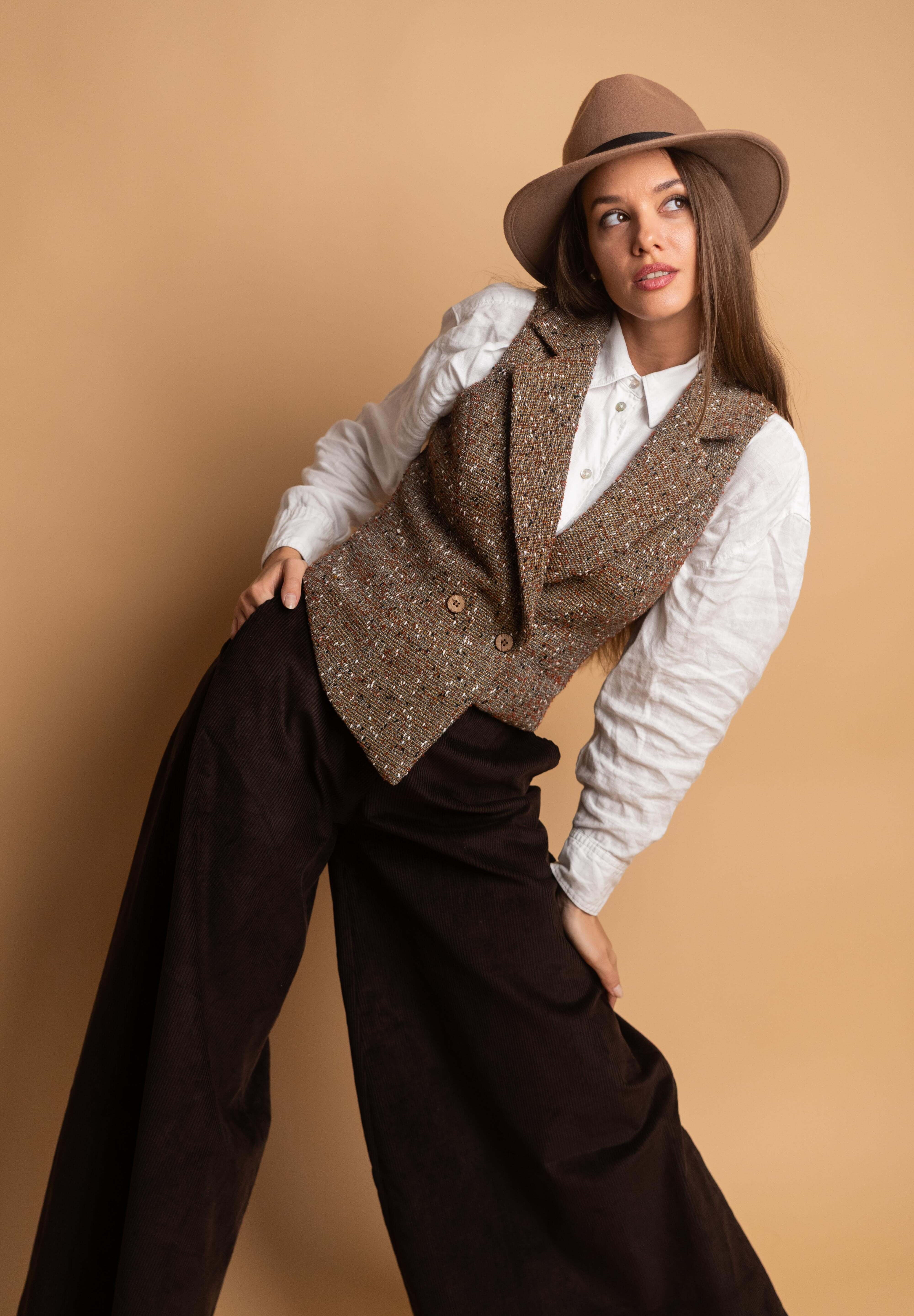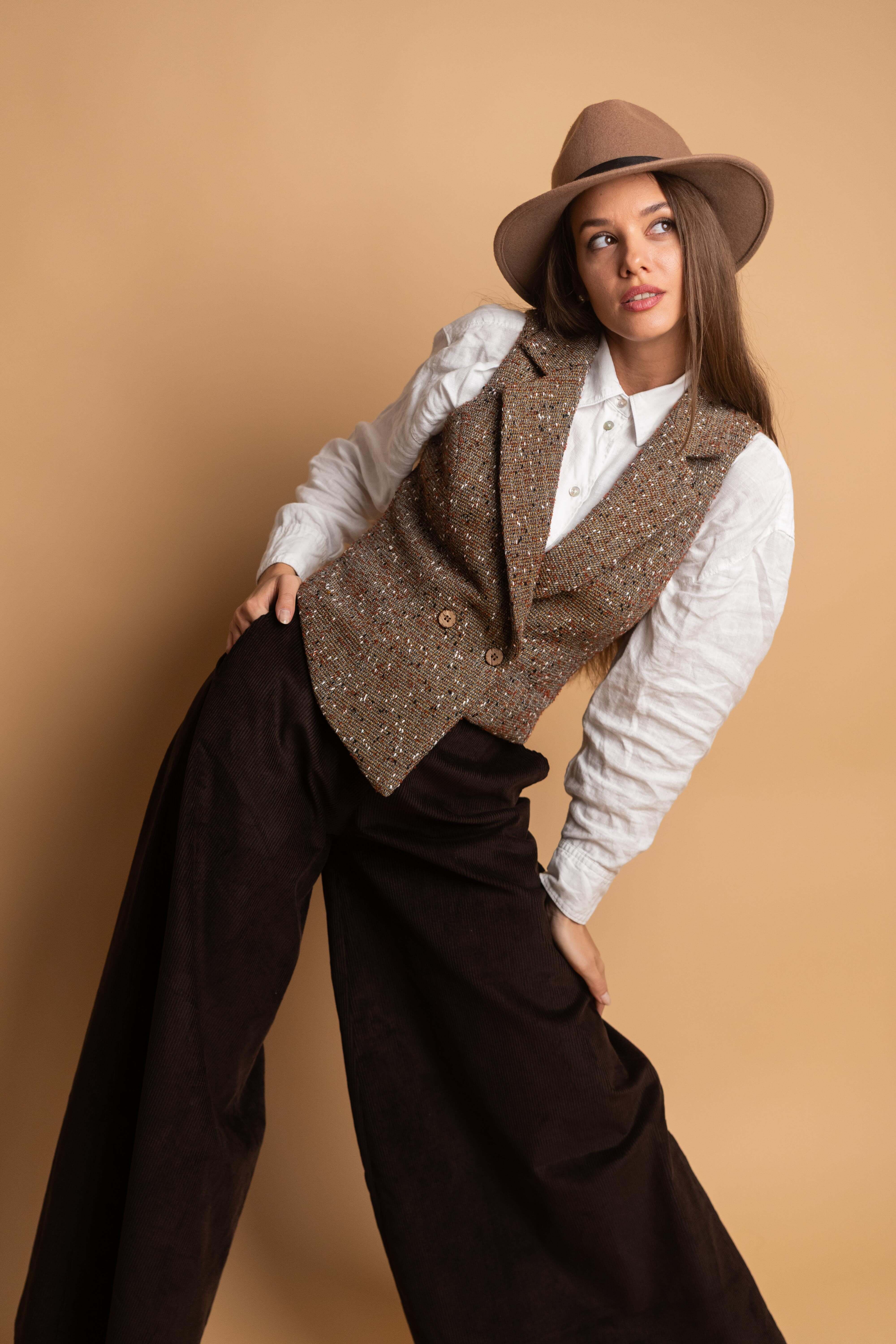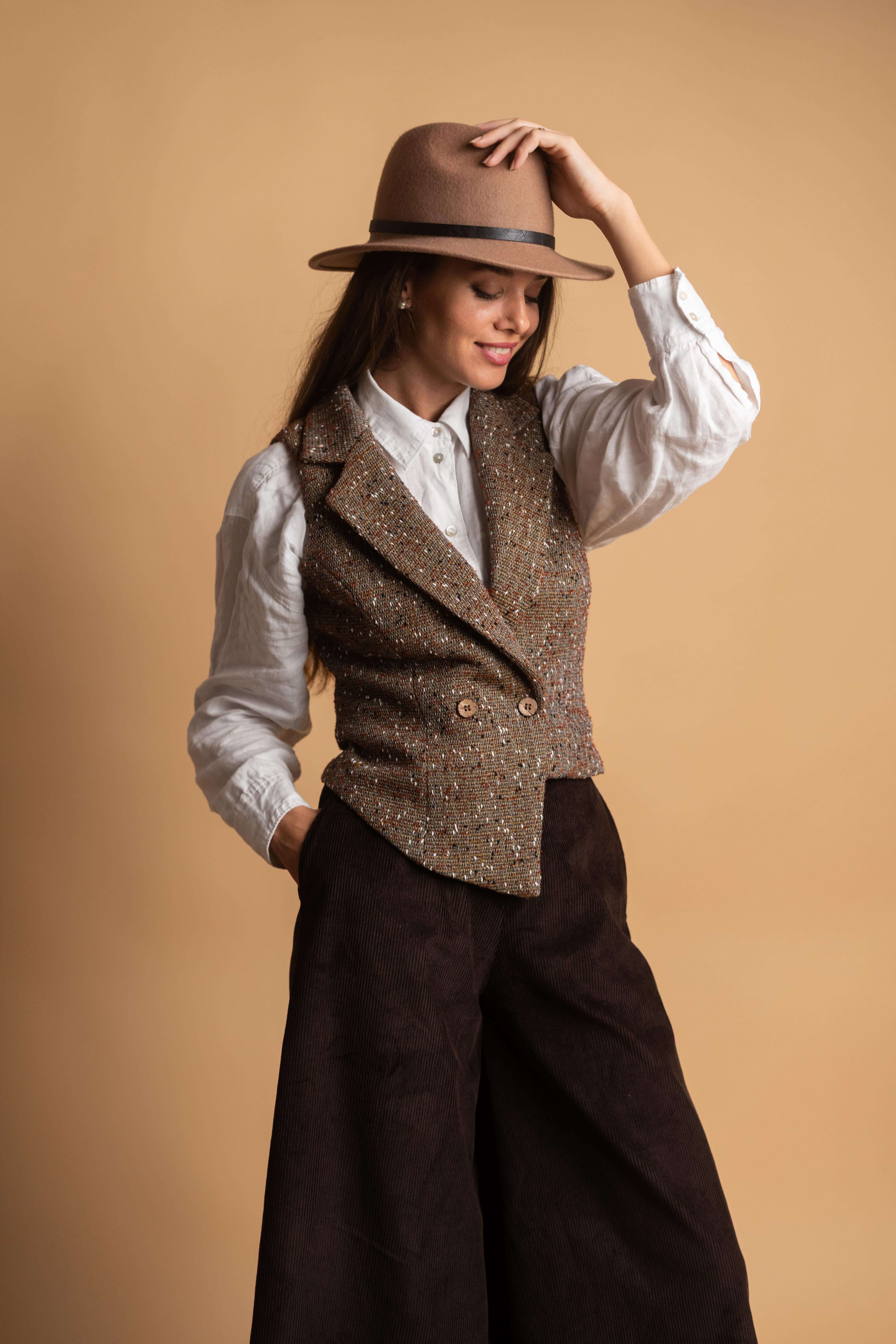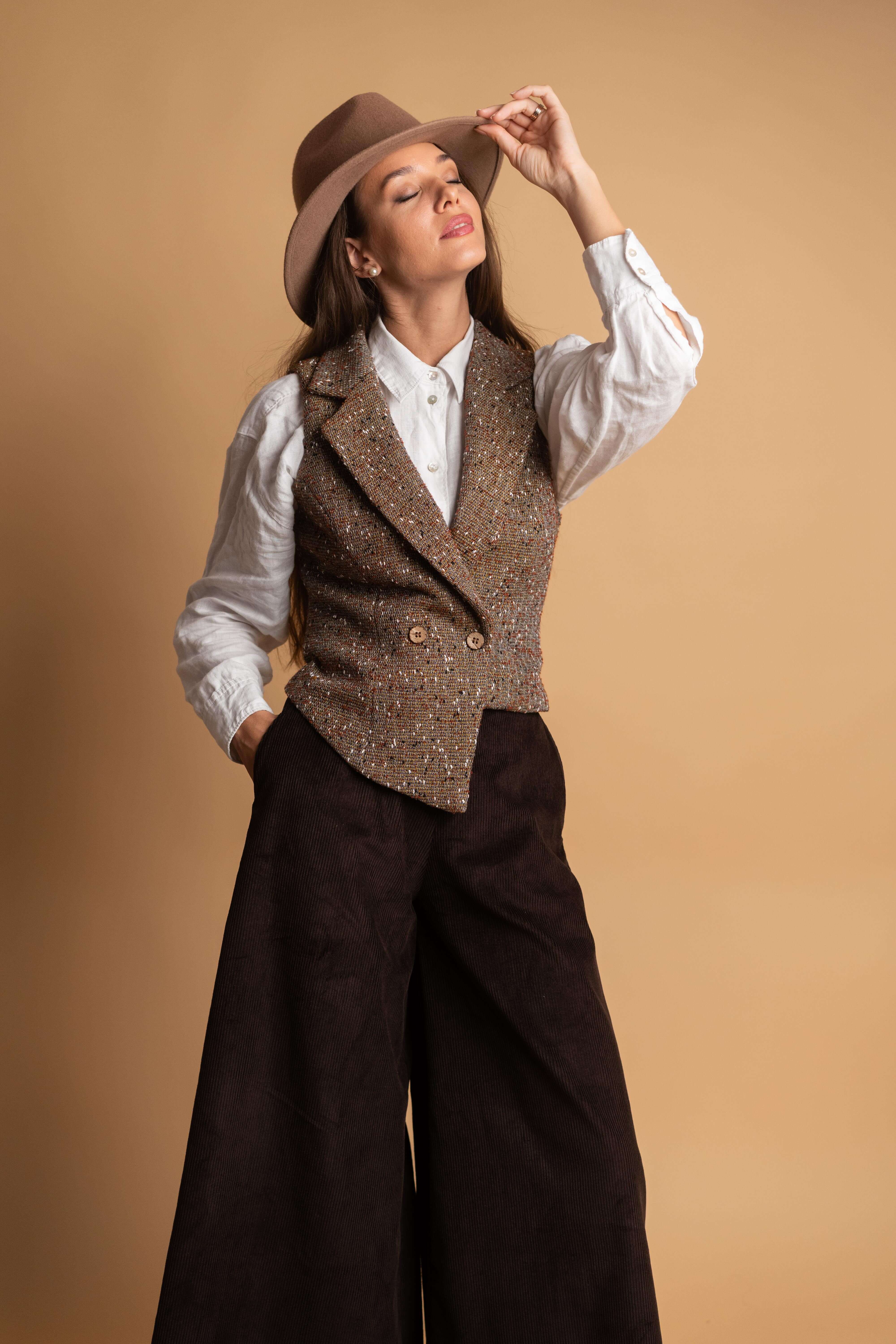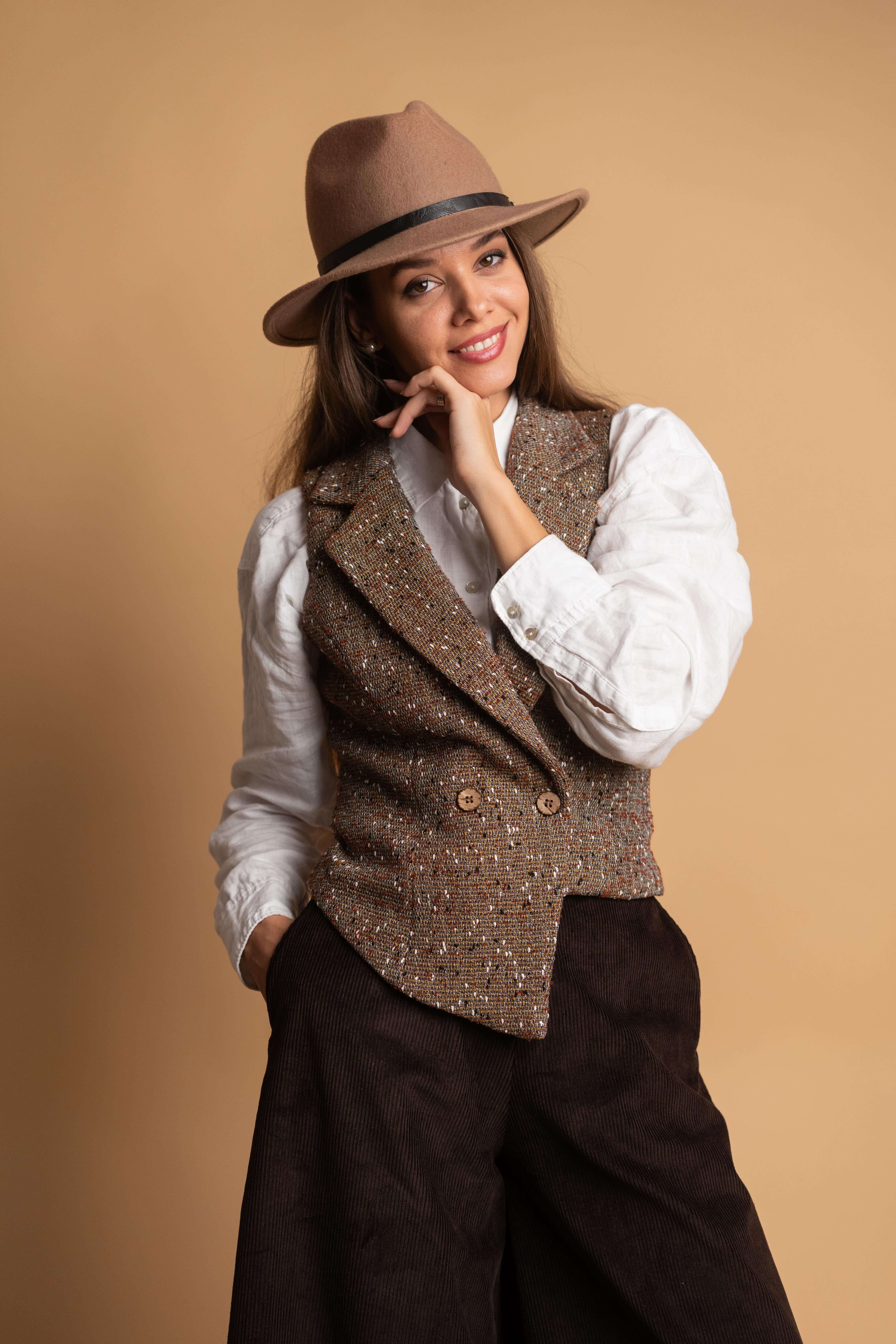 The "Crisana" Wool Tweed Waistcoat - Rustic Brown