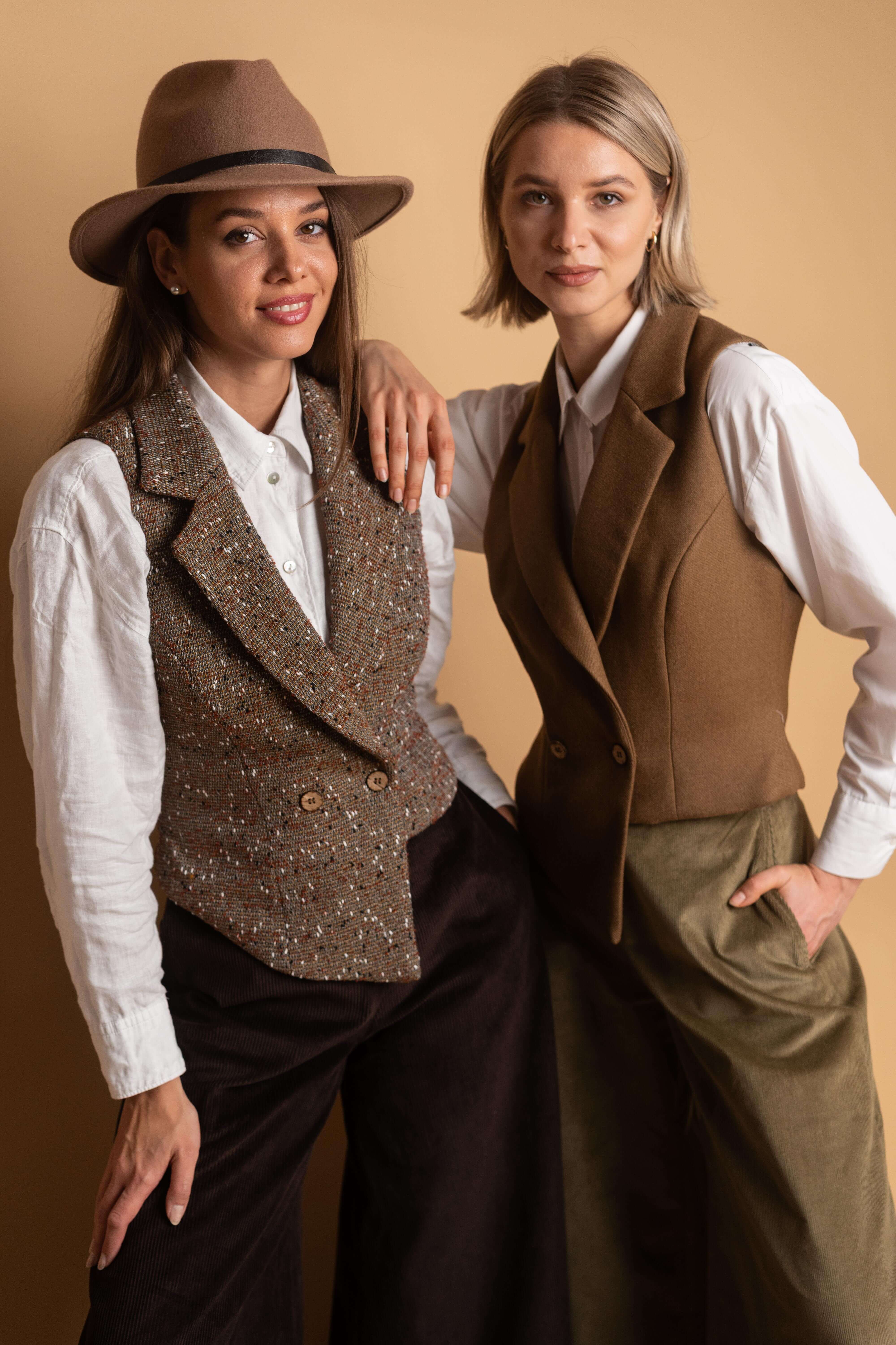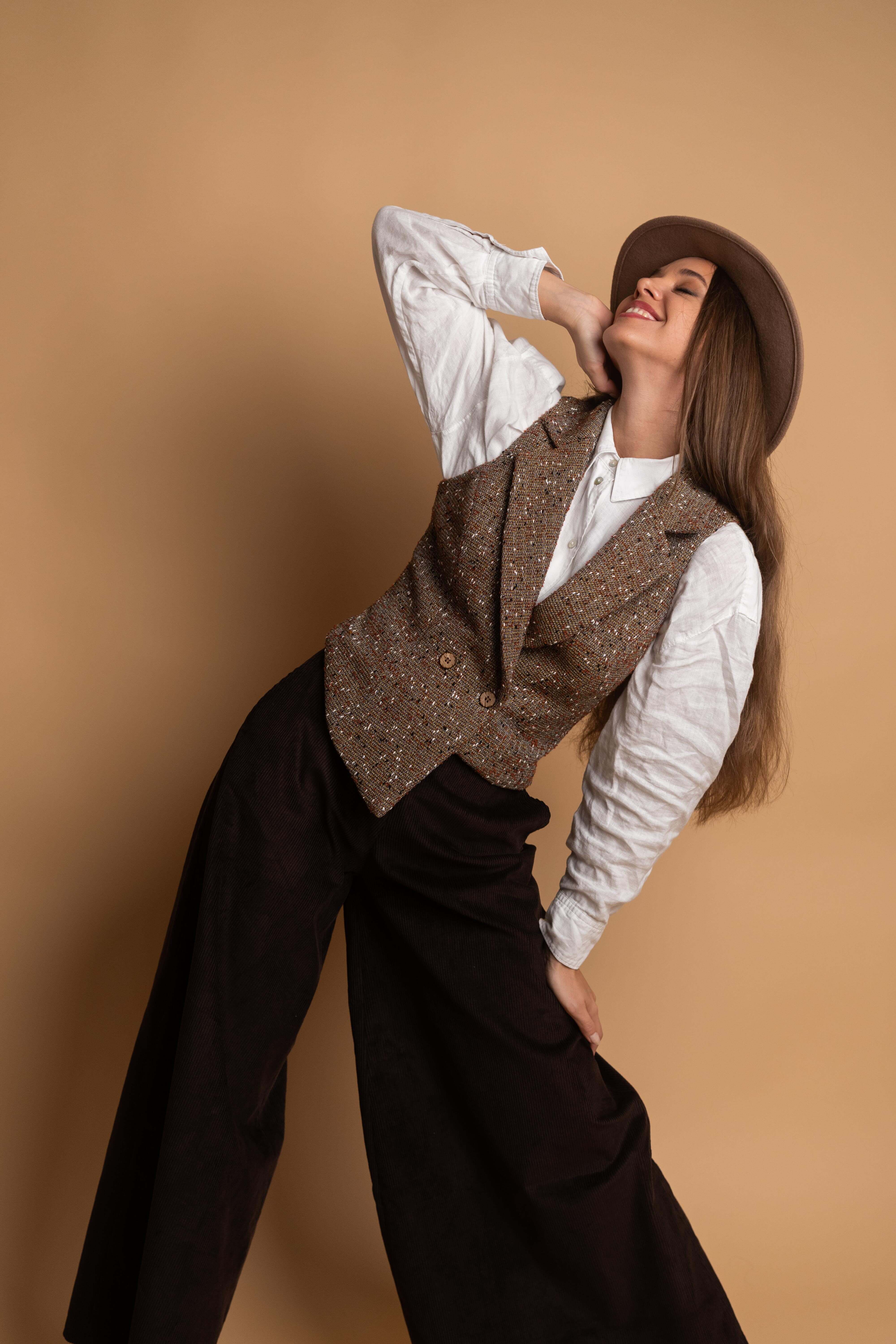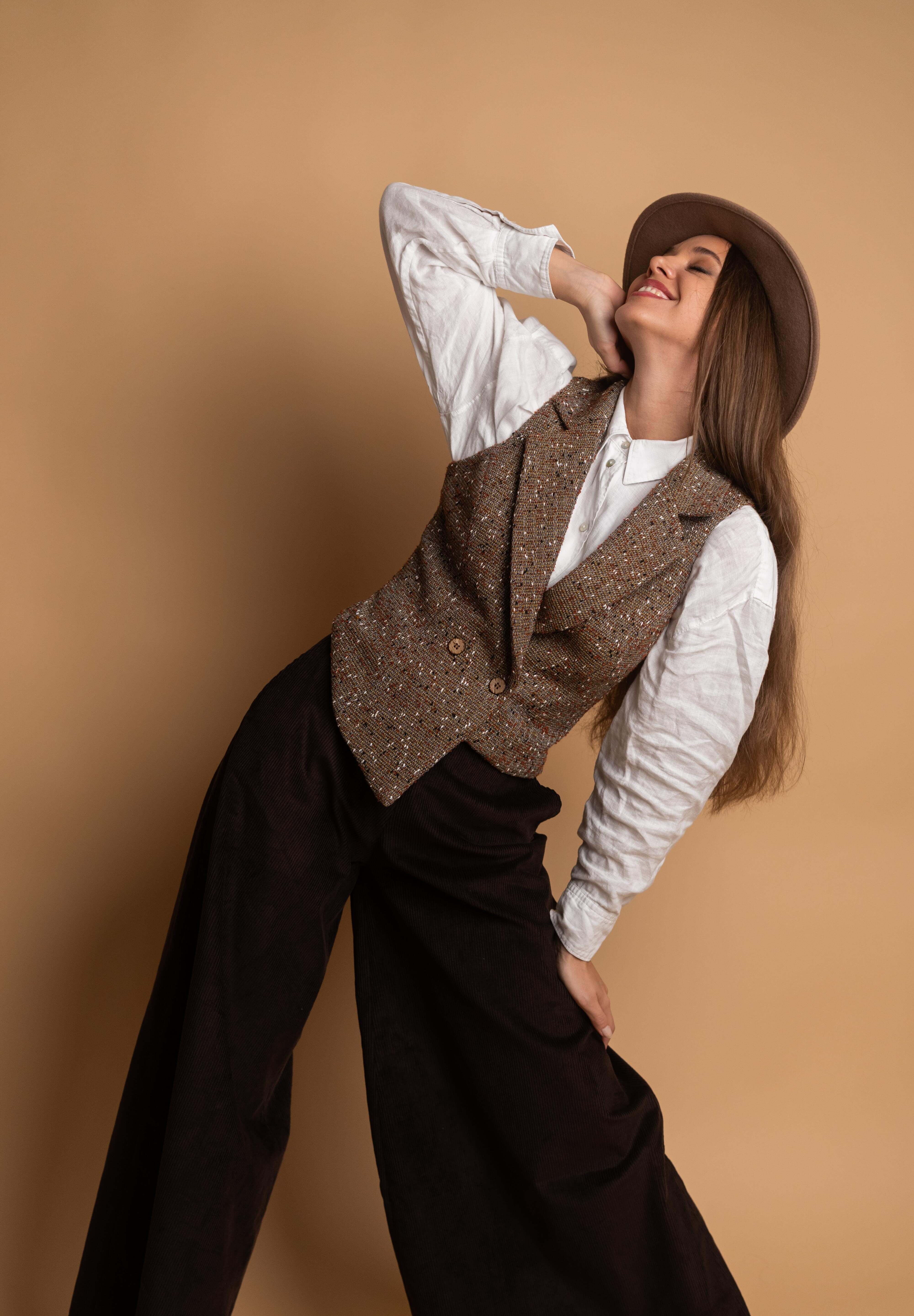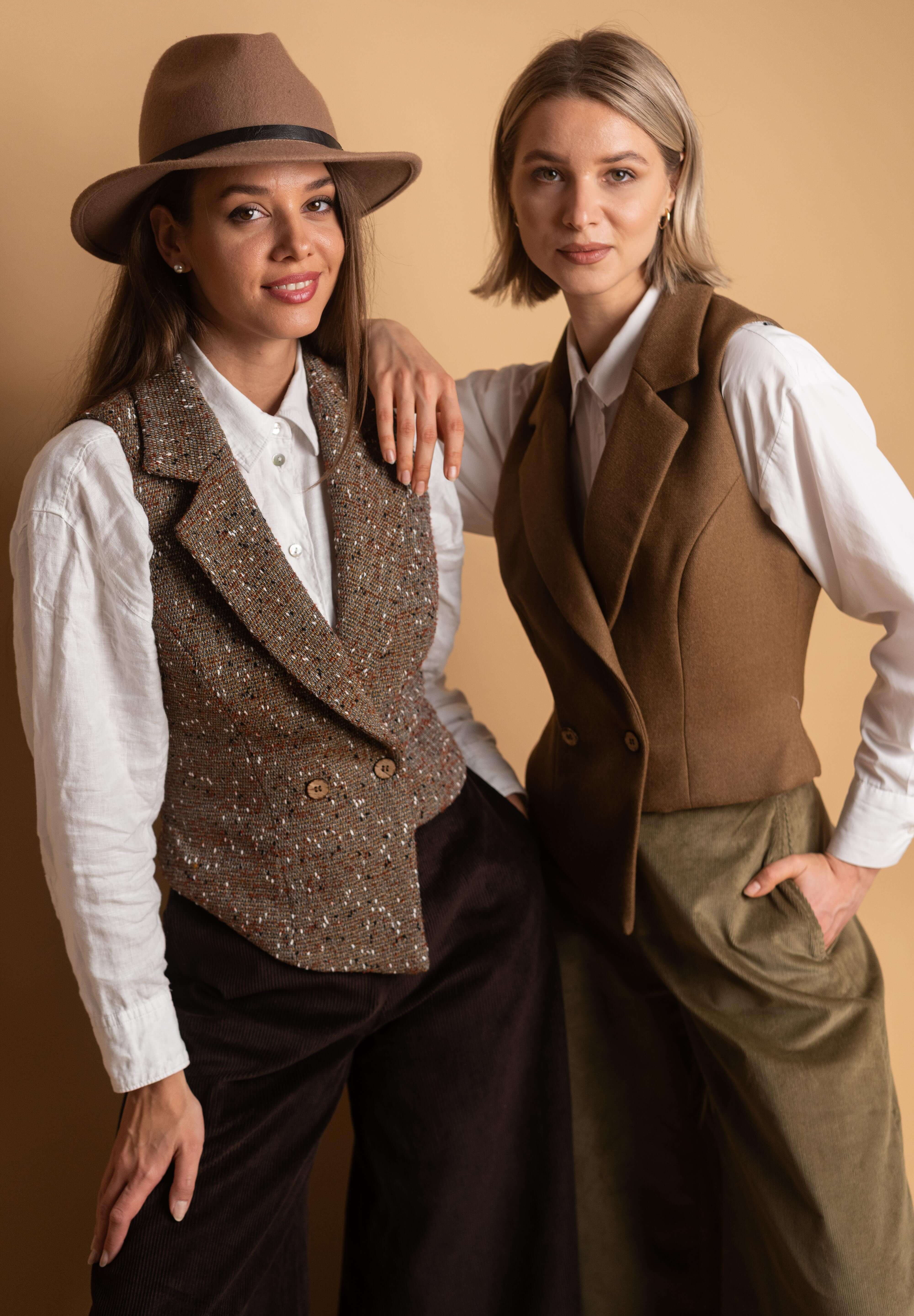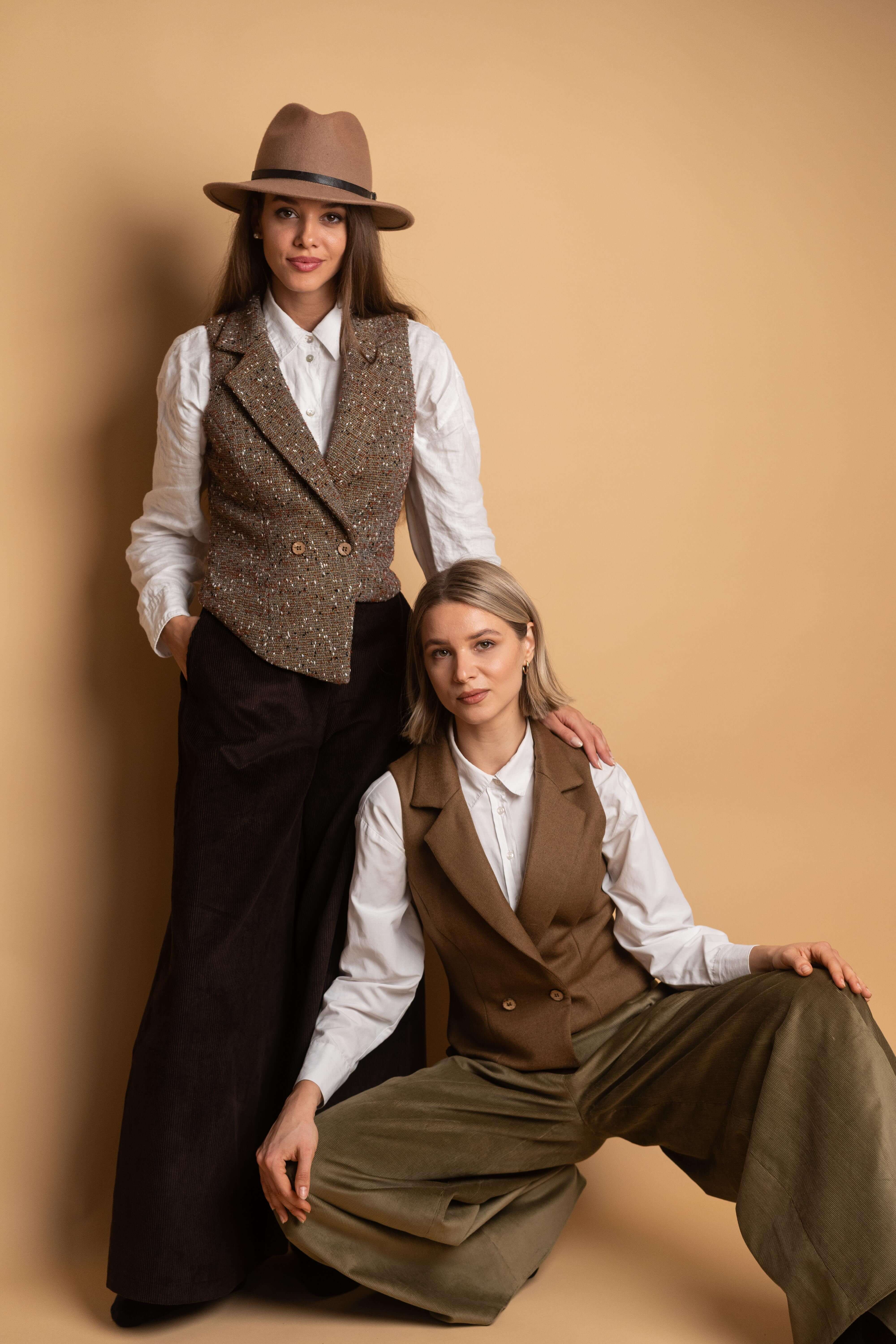 The "Crisana" Wool Tweed Waistcoat - Rustic Brown