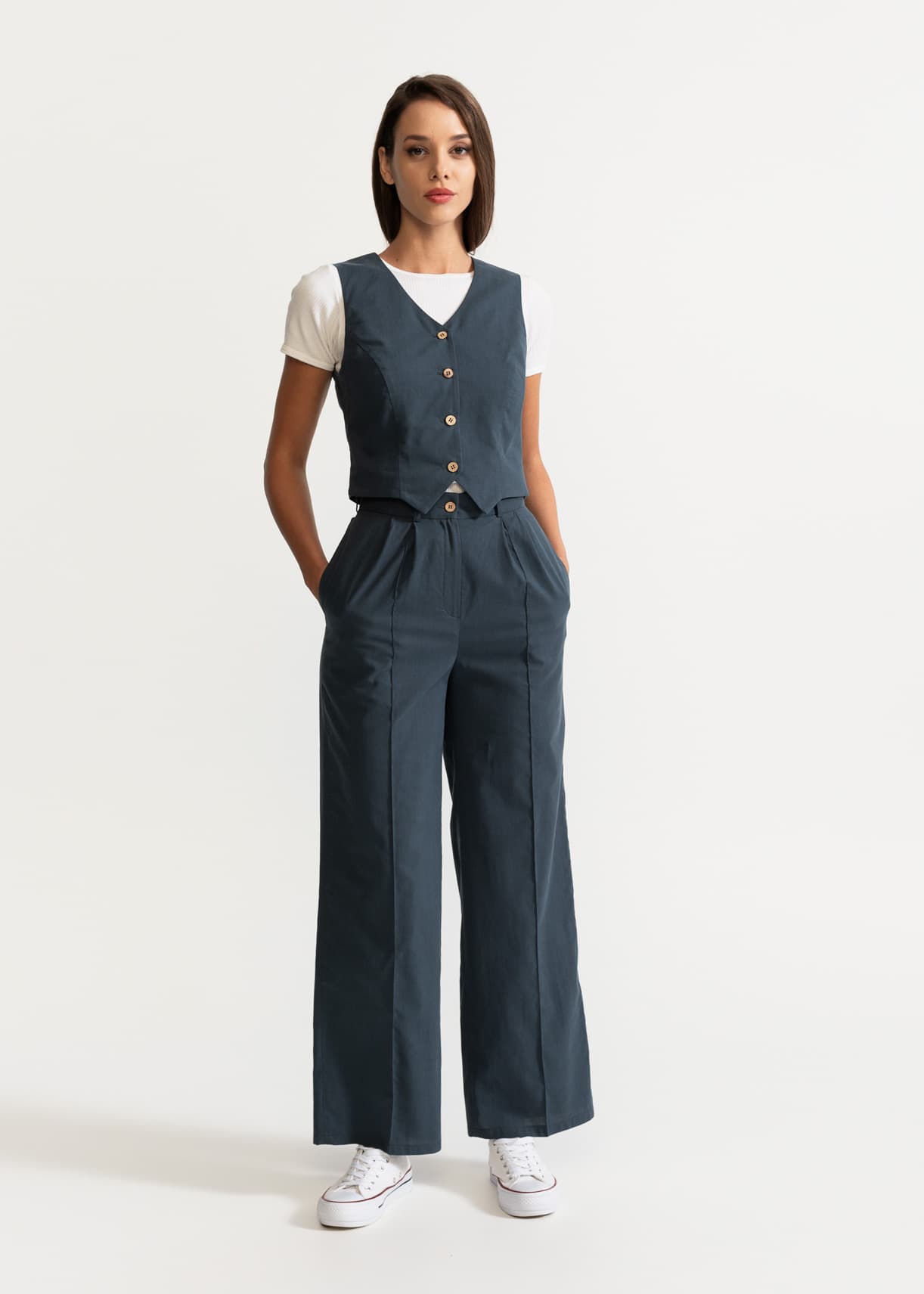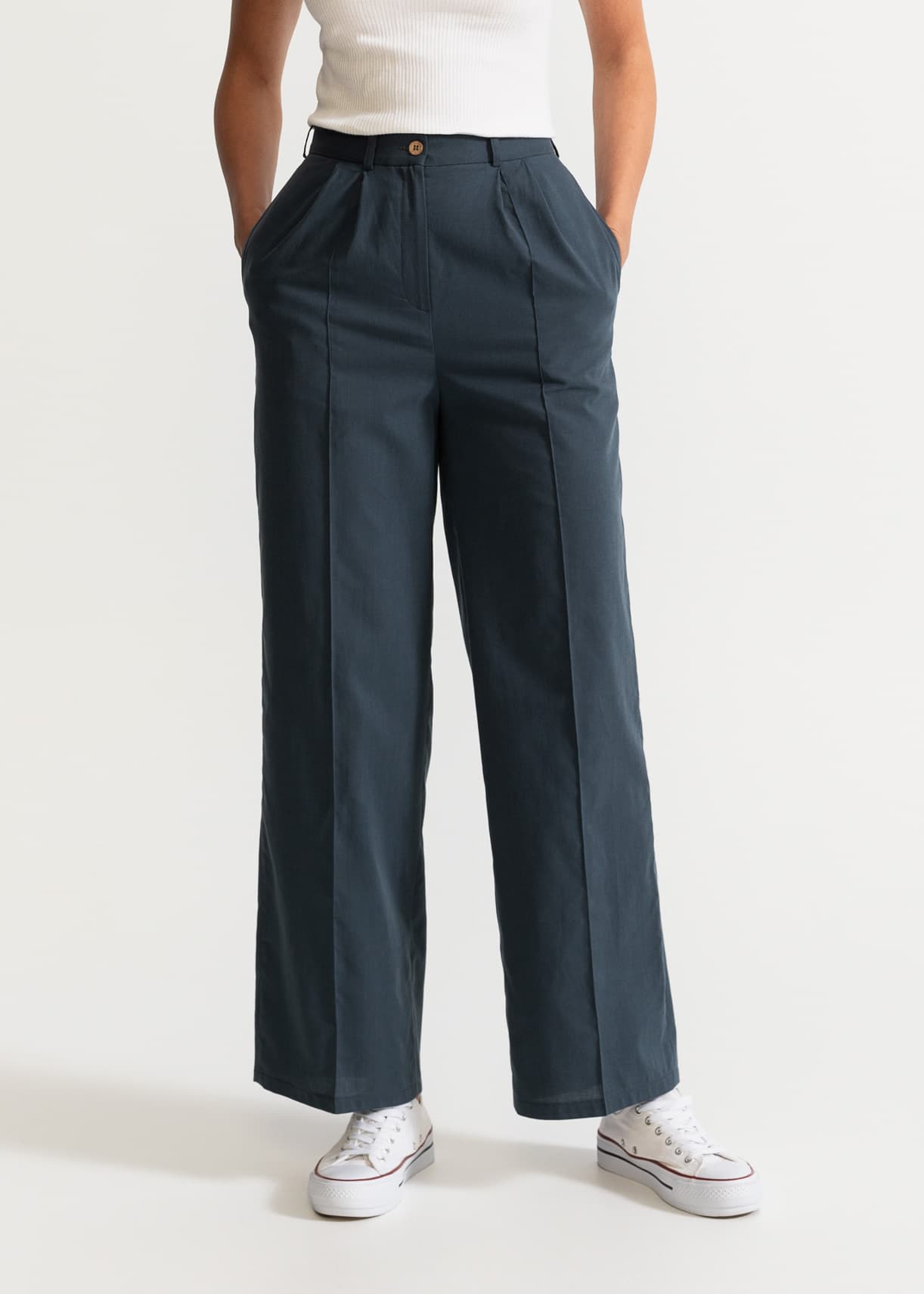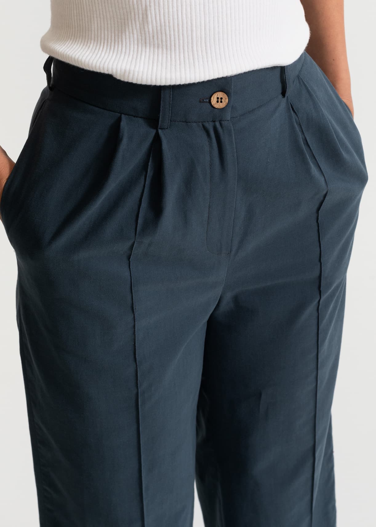 Introducing "Figa" our elegant front-pleated straight pants made for powerful women. Crafted with precision from 100% European linen, these pants offer a luxurious feel and a beautiful drape. Inspired by the timeless style of women in "Ocean's Eight" movie, "Figa" exudes confidence with every step. The front pleats add a touch of elegance, perfect for any occasion. Made for women who hold a cigar in one hand and a fancy hat in the other, "Figa" ensures you make a statement wherever you go. Plus, thanks to the linen blend, these pants wrinkle less, keeping you looking sharp all day long.
