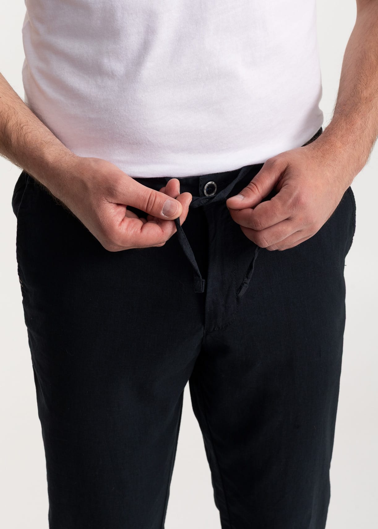 A subtle elastic waistband at the sides and a hidden drawstring on the inside — comfort, without announcing itself too loudly.