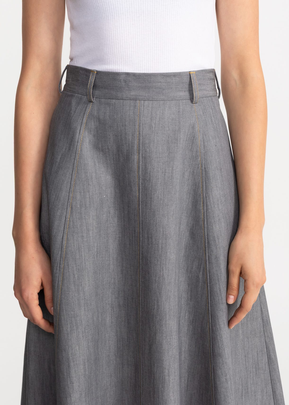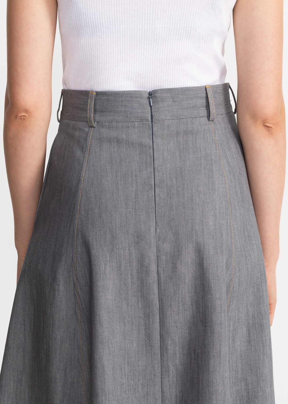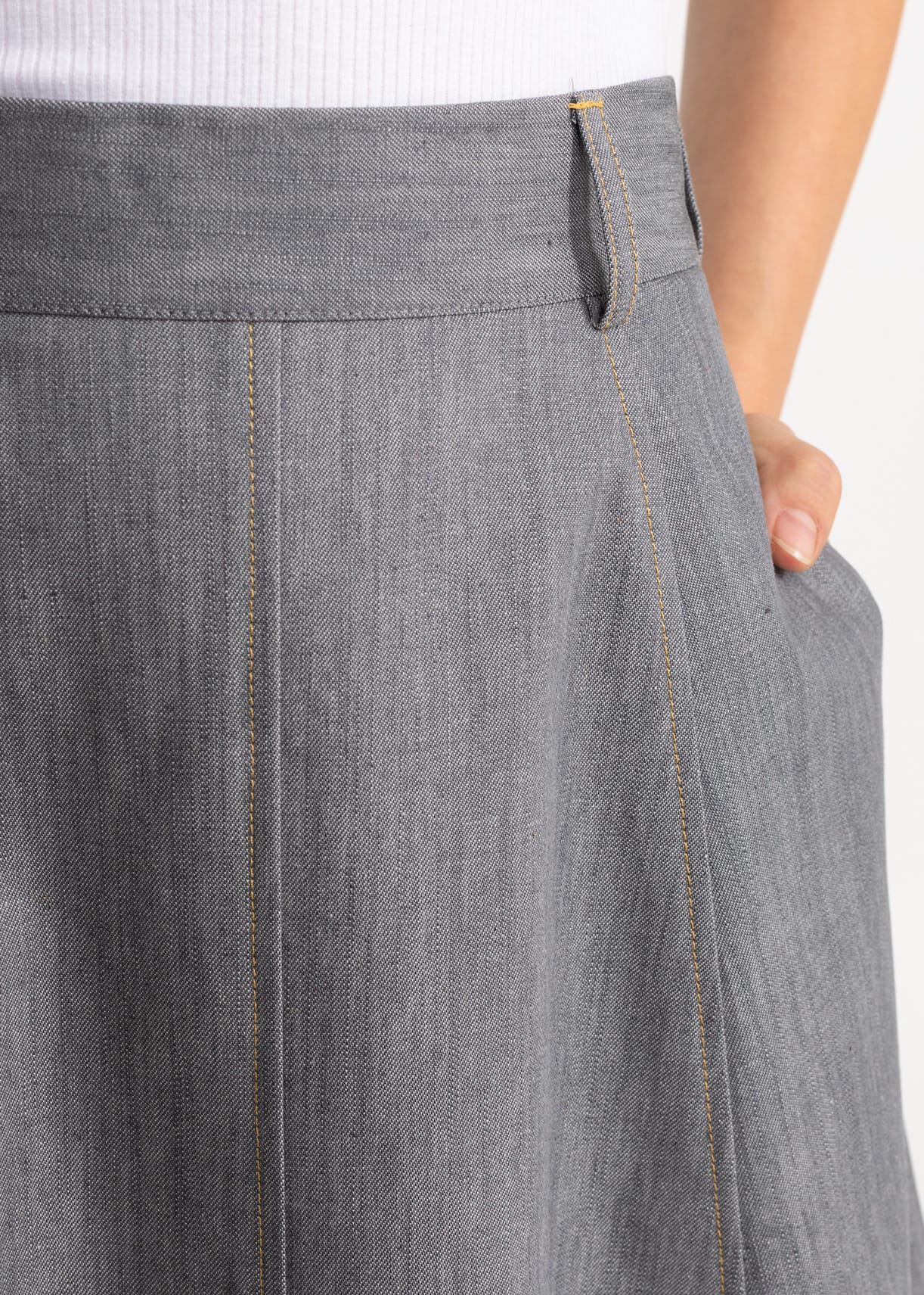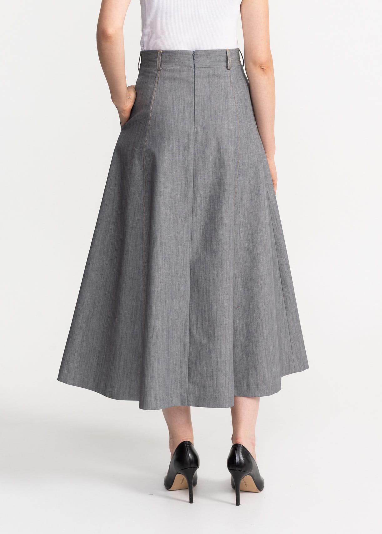 Why would you? The Mureș Midi Skirt is crafted from durable grey denim, combining timeless style with everyday wearability. Falling to a flattering midi length, it offers a versatile silhouette perfect for both casual and polished looks. The high waist enhances your shape, while side pockets add practical functionality without compromising style. Pair it with sweaters, blouses, or jackets and boots for a chic, effortless outfit ready for any season.