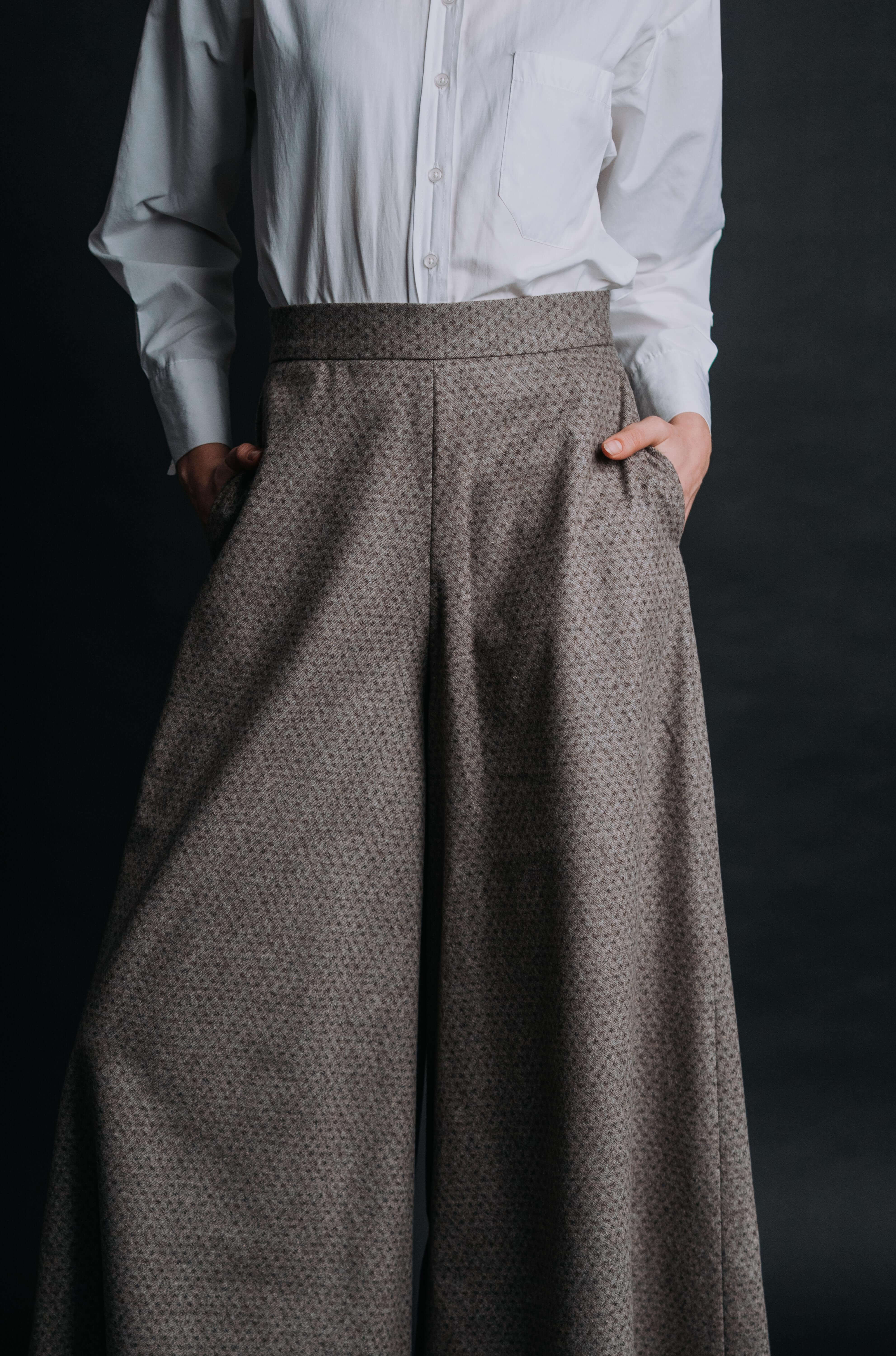 Why would you? The Palazzo Trousers are crafted from soft, warm wool, designed in a timeless black-and-white checkered pattern that adds a touch of classic elegance to your autumn and winter wardrobe. The wide-leg palazzo cut offers effortless movement and comfort, while the high waist flatters the silhouette. Practical side pockets combine functionality with style, making these trousers perfect for both polished workwear and chic casual looks. Pair them with cozy sweaters, tailored jackets, or sleek boots for an effortlessly stylish seasonal outfit.