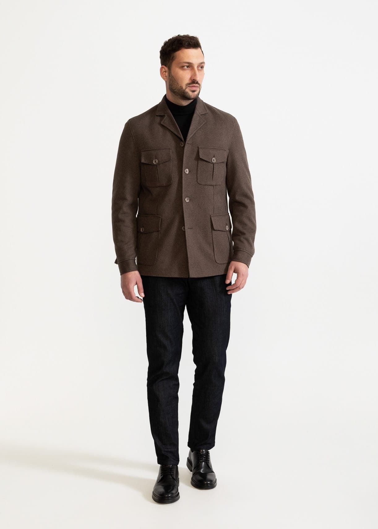 Embrace timeless adventure with our Wool Safari Jacket, a versatile blend of rugged elegance and modern sophistication. Crafted from premium wool, it offers natural warmth, breathability, and durability, perfect for year-round wear. The jacket features multiple utility pockets, evoking the classic safari style while providing practical storage for your essentials. Its tailored fit and structured silhouette ensure a sharp, polished look whether you're exploring the outdoors or navigating urban landscapes.
